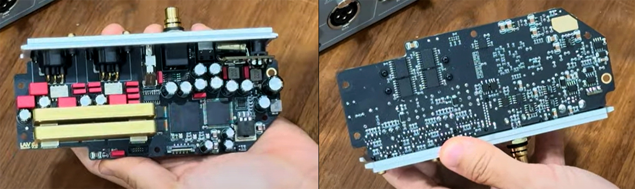 The quad of bigger chips on the underside are the galvanic isolation ICs in true balanced formation.