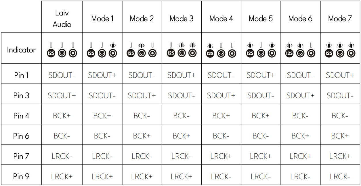 From that end of the pond, my hierarchy of best-to-worst digital transmission method for classic not networking DACs¹ is I²S, AES/EBU, BNC, RCA, Toslink. It's a conclusion drawn over many years with the occasional benefit of otherwise identical cables like AES/EBU and coax from the same brand and range. On the shallow end, one might not tell them apart. On the deep end, things break out into shades of grey. Once other little helpers enter the picture, many small things can compound into a bigger thing or trigger a threshold crossing. That's when like critical mass or the 100th monkey, we join a new layer of intelligibility and meaning. It's as though an elevator usually only reaching to the 5th floor suddenly spits us out on the 6th for better views and fancier interiors. Still speaking figuratively, it comes after we've done enough work on the 5th. Setting Micro's I²S pins is done "with the buttons on top of the unit. Both the I²S input and output on the Harmony µDDC support the same eight modes as the Harmony DAC." Micro's solitary output makes it into a reclocking I²S generator so different from Mutec's €749 MC1.2+ which omits I²S altogether in favour of Toslink, BNC, AES/EBU and USB. Where the Mutec is a crossover product from the pro market, the Laiv is an advanced 'phile type that pros wouldn't know what to do with. I-squared-what? Possible ailments from mismatched I²S pins are no sound at all, clicking distortion, channel inversion, issues with DSD even compromised imaging. Laiv's eight schemes cover the most common configs. But there's still a chance that your DAC with I²S over HDMI falls outside the eight. So ensure a money-back return privilege when you purchase a Micro just in case your DAC is such an outlier. Ideally of course, Laiv will eliminate all gambles and demystify the compatibility issue with a published list of known I²S converters and which of the Micro's eight settings is the right one for each. Solving that puzzle should be on the seller not buyer. They're the experts, not us.