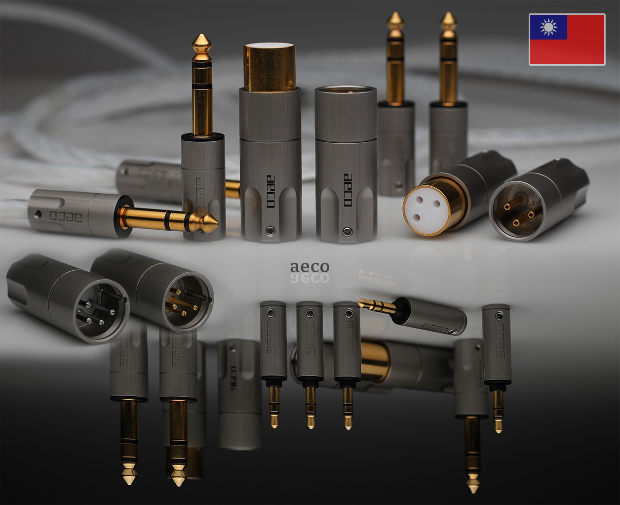 From Taiwan, gold-plated pure copper connectors without intermediary brass or nickel. Silver or rhodium plating optional.