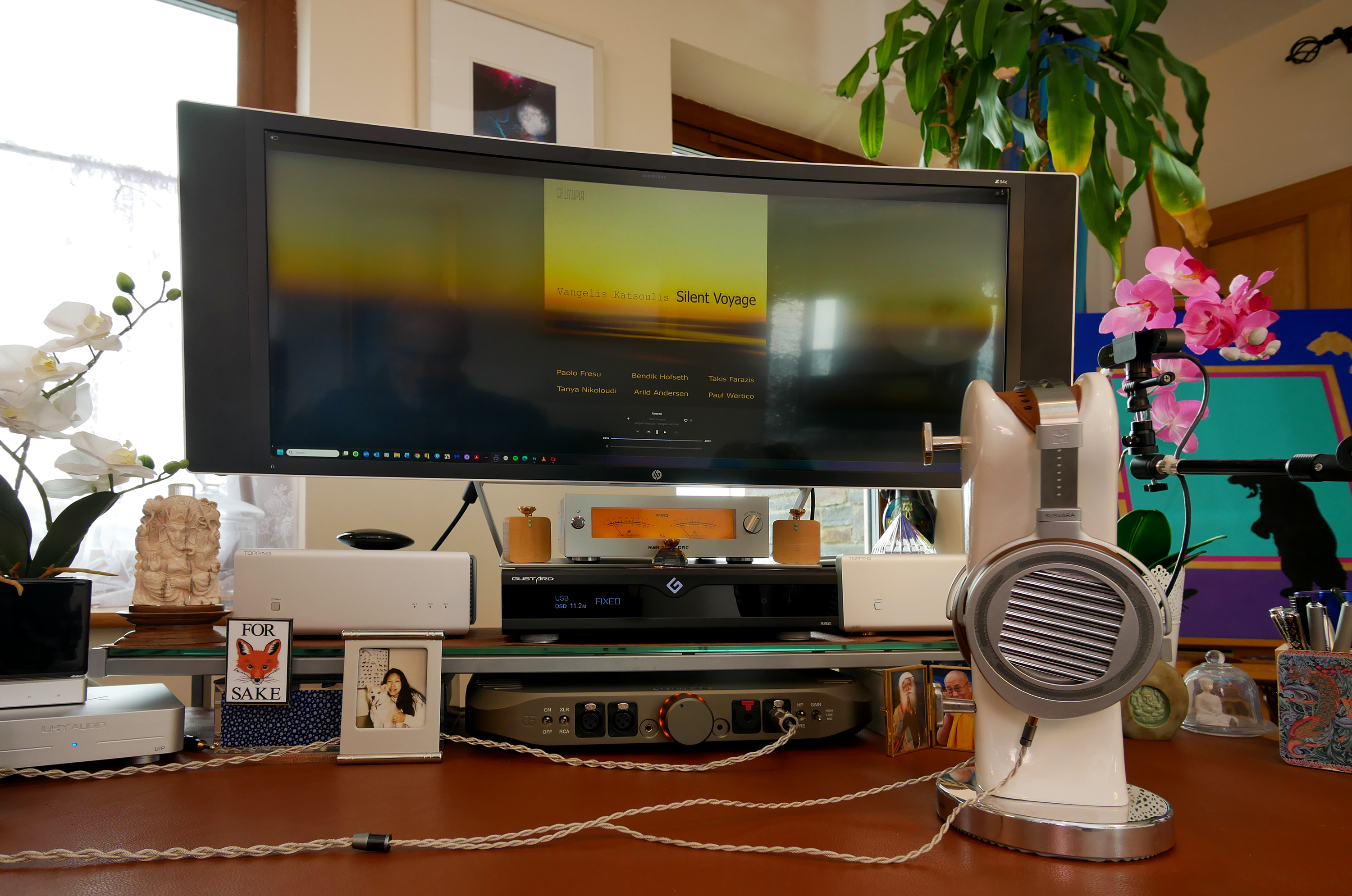 When DHL rang my bell, yellow customs tape showed a security clearance check; probably that no forbidden hallucinogenic substances had crossed EU borders? Whilst the small black satin pouch and dealer business card may have suggested otherwise, the very slinky braided silver cable inside must have disappointed the safety inspector hoping to catch a culprit. He clearly hadn't heard of aural hallucinations baked into hifi accessories. Here we see my desktop setup with an HP Z2 Win11/64 workstation running Audirvana Studio with embedded Qobuz Sublime. USB 3.1 hits a LHY Audio UIP regenerator before USB forwards to a Gustard R26II discrete 26-bit R2R DAC set to native DSD256. That deck outputs 5V balanced into a 40wpc/32Ω FangSound Dionysus driving HifiMan Susvara Unveiled. My Lavri gig was a go. Pass it around?