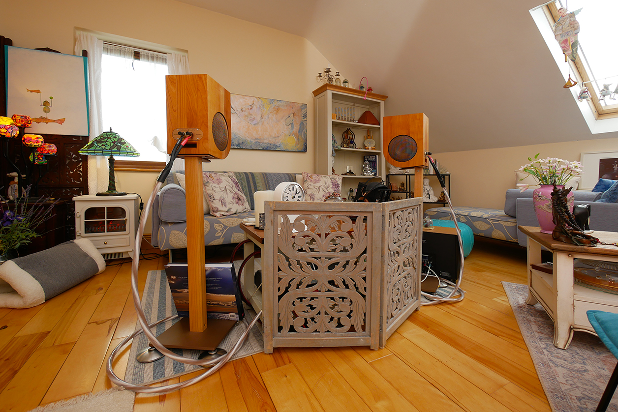 Here is that setup. Before you begin to speculate on why this layout, let me toot my own horn. If for resolution, tonal balance, textural continuity and bass linearity we arrive from Immanis/Susvara-type headfi, the smartest solution for speakerfi is the nearfield. Its classic take is the desktop. But who wants to come home from work to do after-hour tunes in front of a computer? An alternate approach is to turn a small area of a decent-size room into a compact listening zone. Sit against the wall, place the speakers wide but toed-in face on within ~1-1½m. The goal is cubits of open space behind and next to them so that room involvement can exit the picture. Do you remember being a kid, nose pressed against a bakery's window? That's the kind of soundstage this casts. You're not exactly in it just as you weren't in the bakery then. But you do feel pressed right up against the sonic bubble. That creates far more immersion than a standard 'free-field' orientation. It's quasi headfi on most counts, just liberated from our skull cave so far bigger. The cosmetic challenge is exposing the back of our hifi to the room. My basic solution is…