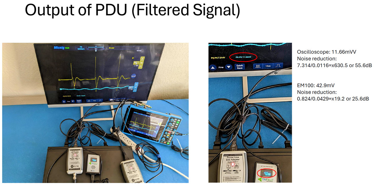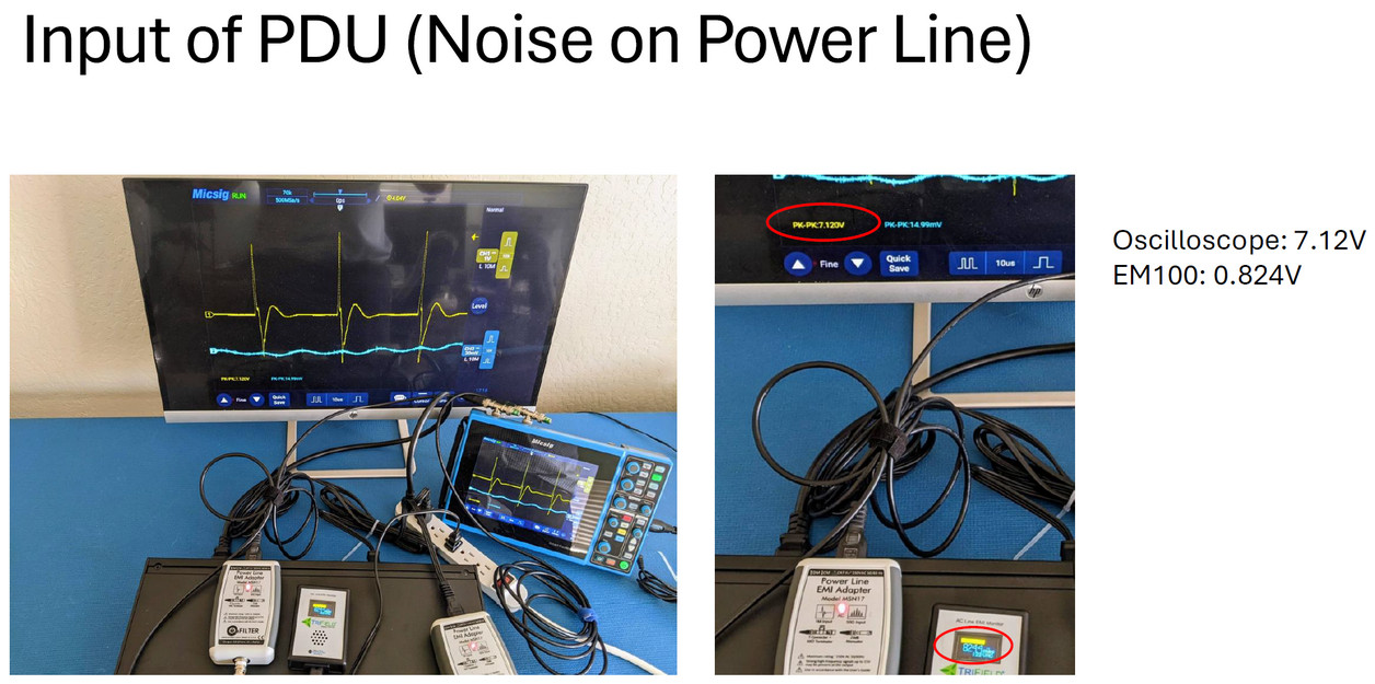 Once the PDU was airborne, "it comes with mounting ears for 19" racks. These can be easily taken off and replaced with the included rubber feet. I did a thorough analysis of your sample unit in addition to all the usual tests we do in production so that we have a baseline using our own instrumentation and the EM100 meter. Below is the summary. Please ask any questions. The gadget is what it is, an amateur meter that takes only half the measurements (just differential mode), has a high noise floor and doesn't really measure peaks. So treat your test results with a healthy dose of scepticism. I ordered an extra EM100 with the hope of simplifying our production test for each unit which uses an oscilloscope but it is just not up to the task. Should you want to engage in professional-grade measurements, you'd need an oscilloscope and our MSN17 adapter. Among many other places, it is used by NIST (National Institute of Standards and Technology) that sets the measures in all fields for the country just like the NPL does in the UK."