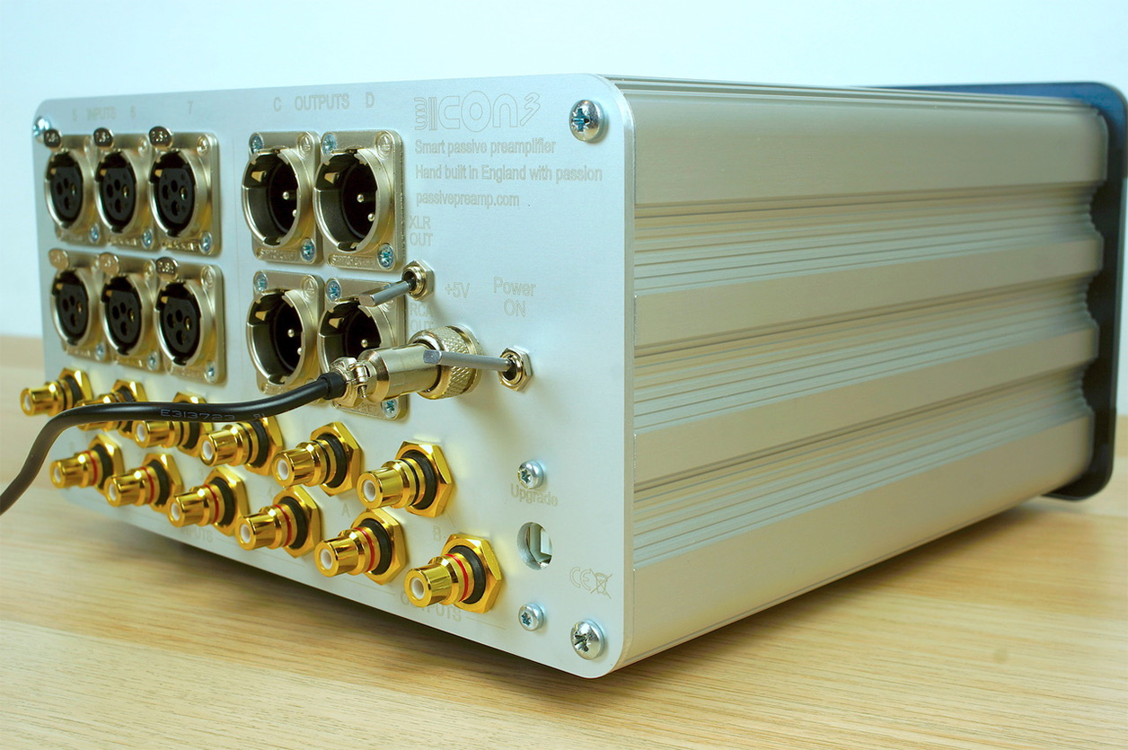 With the icOn4 Pro an à-la-carte proposition, what will fully loaded units look like? Since Pal hadn't actually built a big one yet, he submitted this photo of his prior icOn3. "The big chassis was a transition between icOn 2 and 4. Because the small chassis has insufficient space for more than one pair of standard XLR, I'll use this bigger case for icOn4 Pro models which are optioned out for more connectors. It'll be the same look and feel but with a 7-segment amber display instead of the TFT. Optionally I can use the same TFT if somebody wanted that."