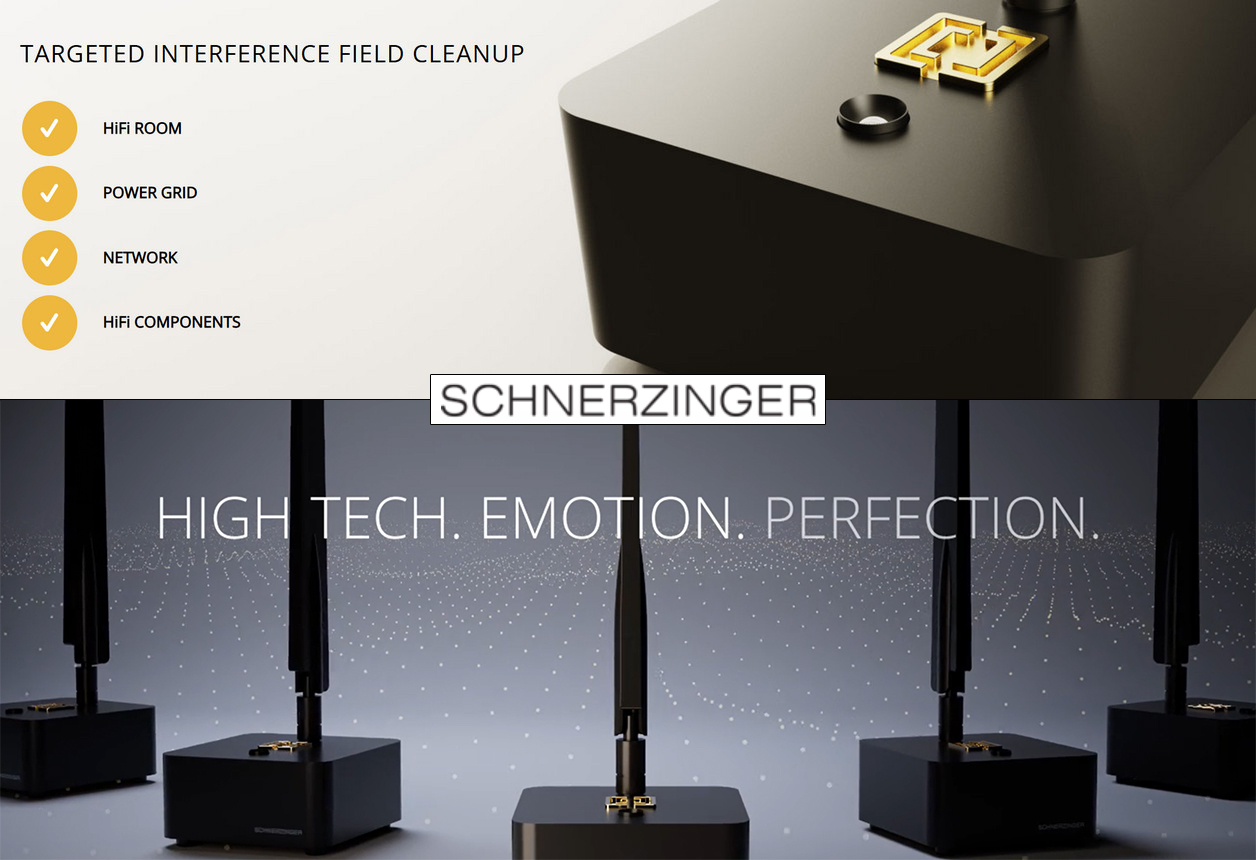 These effects are known, studied, characterized and accepted. When we scale to higher frequencies in the EMI then RF realm, our ears no longer detect these disturbances in isolation although more sensitive people may be affected by headaches or anxiety. Yet our electronics certainly respond and participate. Considering the amount of gear that produces conducted or radiated emissions in a typical household (anything with electric motors, LED lighting, heating/cooling systems, smart-home gear, WiFi routers), the electromagnetic pollution that swamps us is massive. Power lines are the first entry point where interference fields from the urban electricity grid inject then share across powered home appliances including our audio gear. Exotic transformers and all the power supplies in our system contribute to the mix. Even the slight currents circulating through ground cables participate. As for radiated power, even well-shielded cables act as antennae that capture and produce high-frequency fields. I count over a dozen cables in my listening room alone. Now add two security cameras, a WiFi router, a few mobile phones and several live computers when I sit on my couch to listen. Yet this still ignores the pollution coming from outside the room even house. I am not sure whether you had this experience but when you see a microscopic magnification of your skin, it looks disturbingly strange. For the same reason I wouldn't want to see an EMI map of my environment. I believe it would be equally unsettling. Sometimes ignorance is bliss. When it comes to correlating these effects with a perceived deterioration of our sound quality, the publicly available literature backed up by scientific research seems practically non-existent. We therefore deal with a scenario where the only option for the open-minded and curious audiophile is to experiment and trust his/her own ears. It was with this in mind that I participated in two demonstrations of Schnerzinger products. The effect was so immediate and profound that I requested their equipment for review, feeling most compelled to reproduce the effect at home and evaluate the potential long-term impact on my listening habits and playback enjoyment. With the help of Aldo Zaninello of Extreme Audio, our Italian dealer for Schnerzinger then Michael Schwab of Zellaton who curates their exclusive worldwide distribution, I was able to obtain an almost complete set of the brand's Interference Control Technology components.