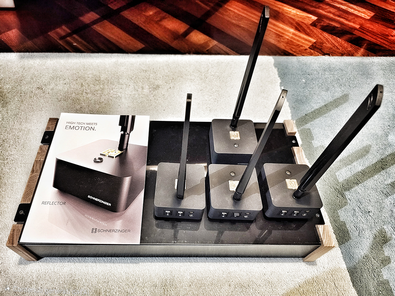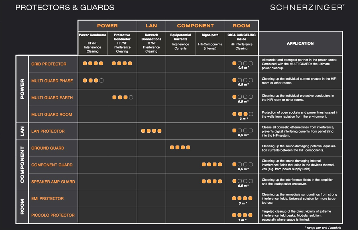 Schnerzinger products are designed to form an ecosystem to most thoroughly cancel EMI disturbances across the entire currently active bandwidth. The foundation of their ecosystem is a cable and power distribution line claimed to reduce incoming pollution directly at the source of wall-socket-injected noise and the circulating interference across our arterial cable system. The products I received belong to the Interference Control Technology line which complements the cable line by addressing power grid, network, room and component-related fields. More specifically, the grid protector and multi-guard phase/earth target our power line while the multi-guard room, EMI protector and piccolo protector aim at airborne HF interference. The latter components are where the proprietary giga cancelling technology implements to the fullest. The newly released reflector is the most advanced and expensive room protection product of the family which premiered the giga cancelling Plus+ tech. Acquiring a complete set of Schnerzinger products in one shot is a significant outlay, hence part of this review is about how, in my system/room and to my ears, the progressive integration of the various elements of the system resulted in sonic changes to share a possible prioritizing strategy. The next section provides a brief description of each component. We then move to the results of my step-by-step journey into Schnerzinger's world. Given how secretive they are about their tech and how the various products operate, the following derives from published descriptions and user manuals whose advice I mostly followed during my experiments.