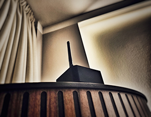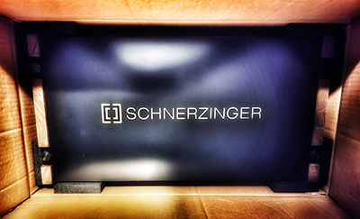 Next I unplugged the grid protector, removed its antenna, placed it in another room on its side and waited a day. When I resumed, I thought that I had one of those days where my mood is not right and everything I listen to seems dull. Then I thought that I should wait for the system to warm up even more. Whilst I recognized the sound of my system, there was an inexplicable feeling of greyness that prevented me from engaging the immersive mode I'm addicted to. The music was more clearly confined between the speakers, more mechanically attached to them whilst a creeping tension emerged especially in the upper midrange after longer sessions. These traits were nothing I associated with my setup before Schnerzinger but now I could not un-hear them. Reinstating the grid protector restored the loss and it was with a sigh of relief mixed with resignation that I realized that a new member of my system had squarely settled in. I was ready for the last step, the reflector as my first proponent of the giga cancelling Plus+ tech Schnerzinger are so proud of. Already the packaging of the product showed much higher care for the presentation of the kit. My intent was to compare the reflector to the EMI + piccolo protectors. After removing the EMI the day prior, when I replaced the 4 piccolos with the 4 protectors, I did a one-to-one switch, hence placed 3 protectors along the front wall and one behind me.