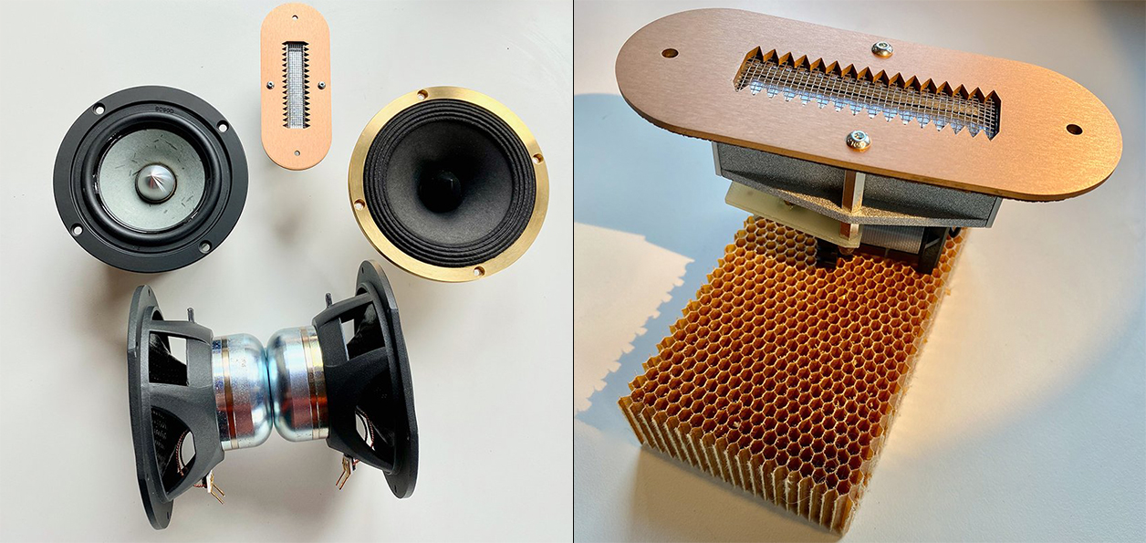 But today that's of no concern. We're dealing with the €12'950/pr A version whose widebander isn't from the Far East but Baden-Württemberg-based Galm Audio to not just help supply-chain stability. True cognoscenti know Galm Audio as a true insider's tip because they develop special drivers for Joachim Gerhard's Süßkind Audio, Odeon and Backes & Müller among others and apparently do so well to not even think of needing their own homepage. ​Respect! Armin Galm's 11cm cone is custom-made for sound|kaos and packs a bronze basket, French cellulose membrane, pleated paper surround and AlNiCo motor. Above all else, Martin Gateley champions this mix of materials and their allocation for its extraordinarily low natural resonances and above-average detail. The bandwidth of this driver is an astonishing 200Hz to 18kHz. Two horizontally opposed so sidefiring force-cancelling 13cm woofers also from Galm mate carbon-fibre cones to neodymium motors. They enter on a 2nd-order slope. This could be enough given that the Vox 3A now already covers 37Hz to 18kHz. But there's more because it ain't bragging if true. Say hello to a Serbian Raal ribbon which enters very late at 15kHz and attaches to the housing's top for broad dispersion and to relieve the widebander of high treble. It also looks cool even if a recent visitor who shan't be named opined that someone had mounted an ashtray atop the speaker. Cretin!