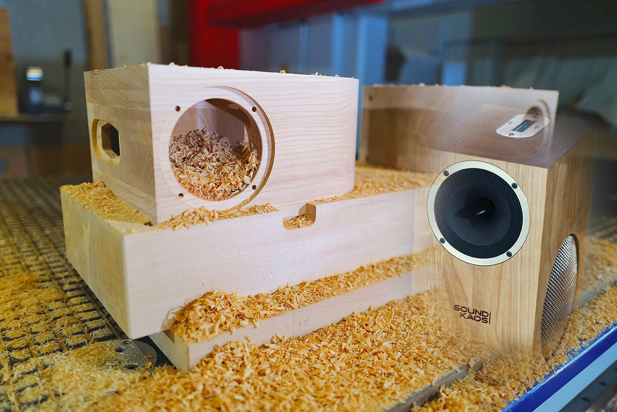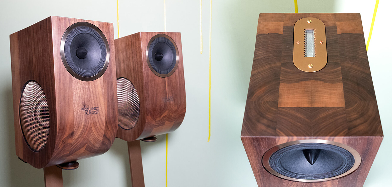 You know the old saying: “Only a small mind keeps order. Genius controls chaos”. As much as this sounds like tasseomancy aka fortune telling from Turkish coffee grounds or tired office humour, there may be a grain of truth to it. And there really is a bit of genius about him, our Swiss Confederate Martin Gateley, head and chief developer of the small sound|kaos boutique. Otherwise he probably wouldn't be able—or have thought of—to cram a four-driver three-way system into a bonsai housing and manage an end result that doesn't equal sonic chaos but is rather excellent and special in the best sense of the word. But let's not get ahead of ourselves. First things first. His portfolio is small, fine and atypical. Gateley has four speaker models of which the smallest Vox 3 can be had in several versions. A duo of woofers, a widebander and ribbon super tweeter make music in a truly cute 17x24x34cm WxDxH solid wood housing. Given these dimensions, even laypeople realize that these four drivers couldn't possibly all fit onto one and the same baffle. And that's how it goes. The central role based on bandwidth is a widebander aimed at the listener. In the €8'450/pr Vox 3F variant, that's sourced from Taiwanese supplier Tang Band beloved by DIYers and in business 30 years next year. Their team are clearly doing something right and are said to offer incredible value.