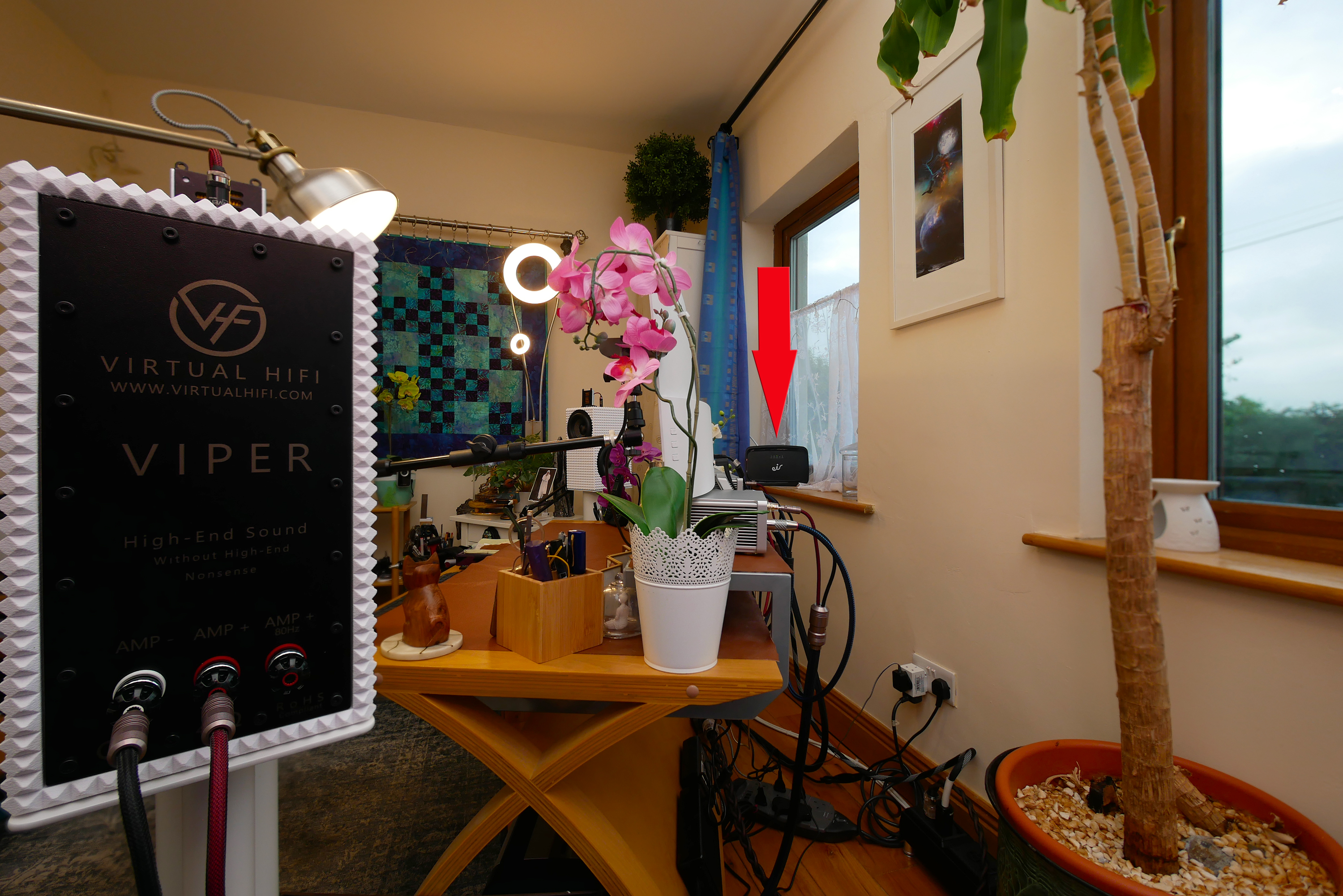 … as the source of their fear: my broadband Internet modem/router and all the noise it likely passes like a pestilent wind laden with pungent cow crap. Whilst all else in my sonic office is sorted, EMI which an AC noise-sniffer gizmo recently measured here was by far the worst in my entire crib. I suspect the lethal cocktail of Win11/64 workstation, 34" computer screen and generic router installed by our Irish telecom authority Eir. The lot is SMPS Central. Ever since the gizmo had freaked out with ugly squawking noises, I wondered. What sonic tonic might polish up this rig? UHF noise embeds like a dormant virus. It loads down our system's immune system without it sounding sick at all. We only notice the subliminal noise virus by subtraction. We don't hear it like a separate ground loop, transformer hum or power-supply surf on a tweeter. Yet as soon as we reduce our hifi's exposure to ultrasonic radiation and voltage spikes on the power line, the sound invariably improves. How much more noise scrubbing is possible? We haven't a clue. If more is possible, we only realize it after our next meet with an effective noise-busting tweak. This could become a never-ending tale of many nested noise chapters all interconnected like negative feedback. Noise seems pervasive, brickwall filtering it across endless bandwidth a pipe dream.