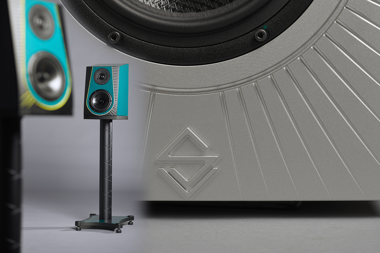 ² SV-Audio's in-house engineer and crossover specialist is Jens Posselt with 45 years in Danish speaker-design experience. Co-founder Kim Storgaard was previously head of marketing at Viking Sound Wave, a speaker brand by his wife Marianne Aaby. Her €5.8K/pr Disa monitor above already used the same 38mm ring radiator tweeter and polypropylene mid/woofer, the same 12dB/.oct. Linkwitz/Riley slopes and T.I.M. reduction circuits for lower transient intermodulation distortion. SV-Audio CEO Casper Vestskov Poulsen is the industrial designer and fabricator of all milled parts. The spiralling grooves in the Frida stand column are an unusually intricate detail thereof. Ditto for the 3D-sculpted logo on the terminal dress plate.