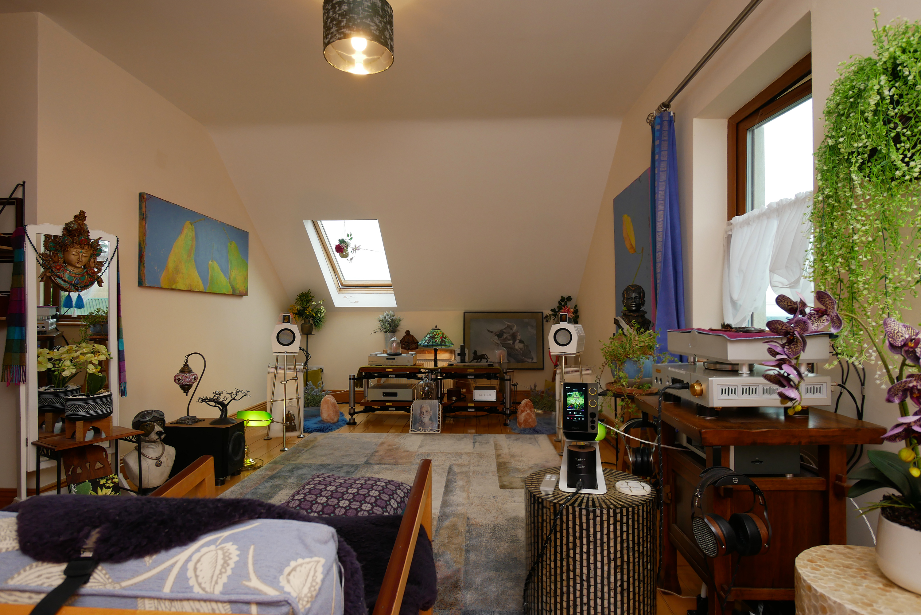 Growing into a groupie? Having grokked Gro on paper and photos then taken it for spins around my tracks, I could quickly grow into a fan with benefits. In my ~45m² space left open into a capacious hallway then adjoining open rooms, I neither require nor desire anything bigger of stature or artillery. In an actual transaction, its stiff sticker could certainly stop or at least stutter my ticker. But on a review's temporary basis, it was no different than accepting a ride in a friend's shiny new German limo. I appreciate that his wheels are wildly beyond my station in life but dig the drive regardless. One has nothing to do with the other. It leaves the crass coin toss to his accountant. Having very recently arm-wrestled mine into submission with the acquisition of ModalAkustik's MusikBoxx for my upstairs rig, I had to invoke self-imposed abstinence. But make no mistake. Gro's tuning and physical package with its customizable finishes did ring my imaginary till hard as alternate flavour to my downstairs domestics.