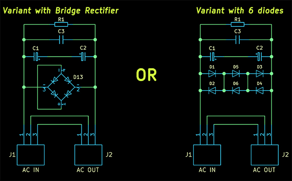 In any event, DC filters and I are on good terms. This goes back to my early days with Nagra. Then my man-tall active Zu subwoofer hummed though not from any ground loop. I'd checked that and come up snake eyes. But I still badly wanted it quiet. Nagra's marketing manager recommended a Vibex DC filter. For their Swiss R&D lab it demonstrably lowered the noise floor on their measuring kit to let their engineers work to finer tolerances to design for still better performance. They swore by it. Ever since so have I. An active power filter from Puritan Audio Labs works in my upstairs system. It too includes their optional DC blocker described as "rebalancing the AC sinewave which removes all DC components to enable transformers to work silently at their maximum dynamics and power¹". I'm thus hip to DC-blocking benefits even on source and low-level gear whose small transformers were never noisy to begin with. I'll leave the 'why' and 'how' to proper engineers like Nagra's. Kinki amplifiers—I use their monos downstairs, the stereo upstairs–are DC-coupled to avoid the time smear of signal-path capacitors. As such they're more reactive to residual DC on the mains than the ultra-quiet recently reviewed Singxer SA-90 monos. Those also couple all gain stages direct except for the input. That adds a capacitor. It's thus sensible that Kinki would eventually offer an external DC blocker. Because their big amps rate at 250/380W into 8/4Ω, we'd expect the external blocking caps to be large enough to handle their max current draw. [These two schematics are from here and similar to what Vladimir Shushurin's Lamm-1 amplifier used.]