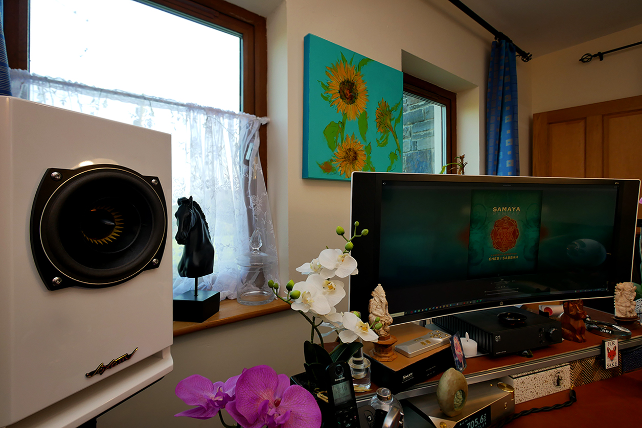 By then I'd already taken White upstairs for the subwoofer tango. Here seamless integration doesn't rely solely on correct frequency and dovetailed amplitude handover. We also chase textural continuity to avoid a softer zone above and below which tonal grip intensifies. To narrow that zone required raising my usual 70Hz transition to my analog filter's highest 120Hz value though the upper bass was still softer than what happened beyond in either direction. That was the first deviation. Related was dynamic nonlinearity focused particularly on the third octave above middle C so 1kHz+. Whenever a performer leaned into this octave with emphasis, that jumped upward and forward of the dynamic fluctuations below it. Like a beauty deviation from AI-generated facial symmetry—an eyebrow slightly higher, a mouth not perfectly centred, a nose not completely straight—this amplitude/dynamic flaw gave White its hyper-resolved personality of electrostatic headphone sound taken out of the skull prison and let loose wall to wall behind the speaker. Simultaneously Anja Lechner's cello and Renaud Garcia-Fons' 5-string upright lacked their usual gravitas. The lower mid/upper bass was still a bit lightweight to do them full justice. Increasing low-pass level to compensate overdid the lowest 1½ octaves. A 200Hz handover might have been ideal but my hardware couldn't accommodate it. As Inès had put it, "my personal opinion is that the AF-1.9 is superior. Its resolution is lower but the overall tuning more even and the bass much better. What do you think?" Spot on. Resolution brought about by nonlinearities in various performance aspects isn't true resolution. It's just a magnifying glass held over a specific bandwidth. Whatever falls within the scope of the loupe increases in intensity or 'pixel count', the rest remains normal. After all, concentration works by exclusion. Not that Black's take on resolution was normal, either. Whilst far more even and anchored than White, its lucidity and contrast demonstrably eclipsed that of my desktop residents. Though subjectively less resolved than White, its resolution was far more honest, its balance truer. It was superior to my classic Acelec 2-way but on the Enleum not its equal in bass reach and weight. Those aspects simply weren't a subjective demerit on the desktop where I prefer a somewhat lighter tonal balance. Given this assessment between siblings, I decided to bench White for the duration and focus solely on Black. The path to ever higher speaker sensitivities seems far from clear-cut; and Black costs €2K less.