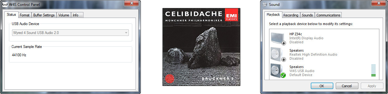 If you're a Windows wo/man pre 10, you first install the XMOS driver. This blessedly accompanies your shipment on disc so you needn't download it. Not only does íntimo then show up marked as W4S USB Audio in your sound device window, you also get a control panel to adjust finer parameters like the buffer setting.