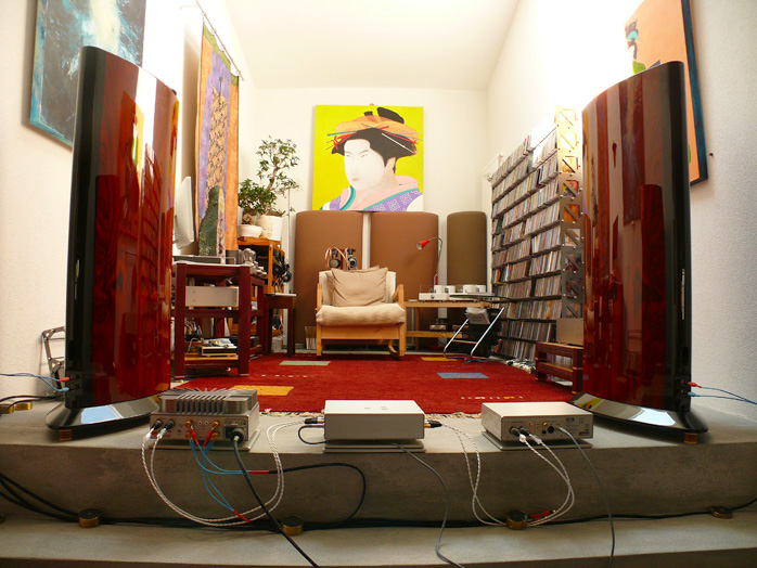 Sumptuous x 3? The tri-Nagra system most assuredly veered deeper into the kind of flesh+blood turf usually associated with push/pull valves. But really, this was the marriage of triode preamp with Mosfet power amp. It suggested that driving the MSA directly off the CDC to eliminate the PL-L might move backwards again into slightly leaner, faster and more lit-up energetic territory. Where the below combination exceeded what most all-tube systems can provide was a low noise floor. The Nagras are very quiet. This creates high ambient retrieval of the spiderwebby stuff that's behind and around the performers to suggest—or with premium recordings actually impose—recorded space in (or on) your own acoustic.