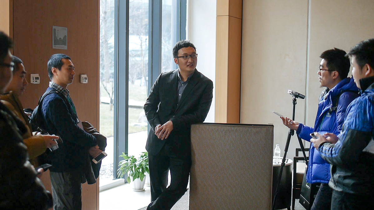 Chinese journalists interview Fang Bian in Beijing, 2014. |