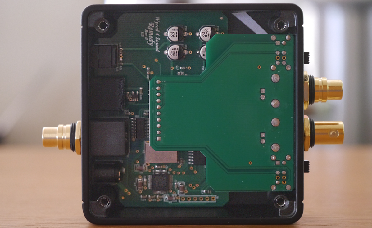 | A look inside shows the 'what'. Here we remember that EJ Sarmento's first femto clock encounter came when he experimented with better parts to update his already popular DAC2 to SE and DSD status. As an example of sideways trickle-down, the Remedy tacks one of their performance advantages to competing kit. Tony's opening comments on owner feedback which Wyred has collected suggest that potential applications include not just 'consumer-grade' mainstream gear but more 'high-end' stuff that's simply a few years old. Sufficient age should imply earlier less accurate types of clocks. I didn't think my Metrum Hex, AURALiC Vega or Aqua Hifi La Voce 2 converters were old enough to apply. Yet. But I'd check just in case.