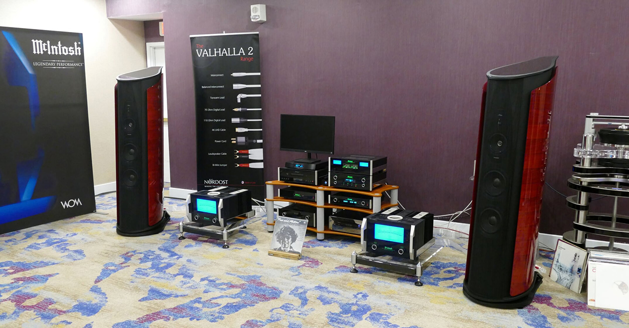 Audio Excellence was in two locations. In the smaller room, a more modest (?) Wilson system acquitted itself quite nicely. In their ballroom setting, you could see a solid wall of almost unending McIntosh greenery with a large listening area devoted to the $186'000 Sonus Faber Aida. Dream scale and pedigree were on full display.
