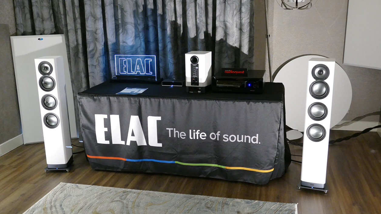 Elac demonstrated their new Navis powered range to good effect. The $6'000/pr towers made large-scale enveloping sound when I walked in while the smaller $3'000 monitors awaited their turn. The system was a superbly done minimalist effort and if matched with the optional Discovery Connect transmitter, would go full wireless to boot.