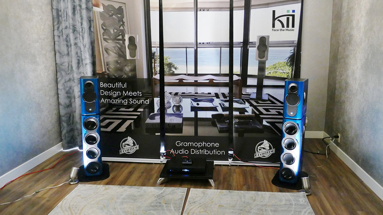 At the higher end of the amplified scale, Gramophone Audio Distribution served up the very slick Kii Audio modular speakers. The $20'000 model 3 is already a well-reviewed highly regarded monitor sporting onboard connectivity, DSP correction and 6 x 250w power per side. Adding the BXT module adds a total of 16 additional drivers plus 7000 watts to create an awesome powerhouse of a floorstander which still occupies a very small footprint. I believe the number stated $44'000 for the system. Its hallmarks were transparency, responsiveness and authority.