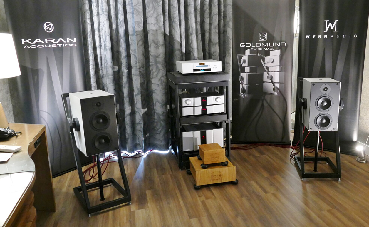 Wynn Audio's static displays had suitable eye candy at a variety of price ranges and for listening, they opted for both regular and ballroom settings. In the smaller area a delightful pair of ca. €40'000 Goldmund played with Karan Acoustics. The sound was top drawer, throwing big scale and power well worth extended visits. In the ball room, high-pedigree sound blossomed from even dearer Karan and Kalista fare and what I originally thought were Tidal speakers. Instead it turned out to be a pair of $43'000/pr Vimberg Tonda, an offshoot of Tidal aiming to pack much of their spectacular sound quality into a less expensive package. Mission accomplished