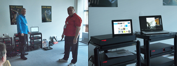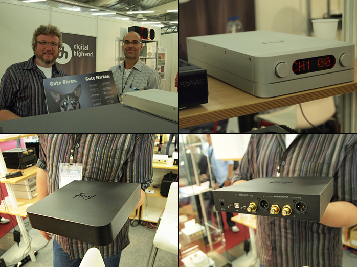 Surprises were to be had also at the Thorsen Kölln and Ingo Hansen booth of Phonosophie where the motto could have been Ingo goes PC. Aside from classic Phonosophie electronics and Viennese Joseph Brodmann speakers we spied an Apple iBook with iTunes + Amarra and the brand-new Phonosophie DAC1 which should ship by year’s end for somewhere between €3.500 and €4.000. Inputs are deliberately limited to S/PDIF and USB to avoid contamination. USB runs 24/192 async and two toroidal power transformers separate analog and digital sections. We were quite taken by the prototype’s performance and look forward to a formal assessment.