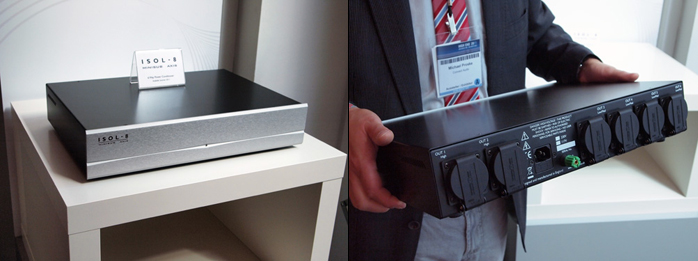 | The line-filtration subject came up also with Connect Audio showing standalone power conditioners like the replacement for the Isol8 MiniSub 2, the €899 MiniSub Wave. Retained are the six sockets, two for hungrier loads like power amps. Isol-8’s Simon Dart explained that those got more effective filters with series elements which the predecessor avoided but which in the value-priced MiniSub were implemented without dynamic losses. The four remaining sockets were upgraded to fully incorporate the company’s transmodal filter concept against common-mode and asymmetrical noise. |