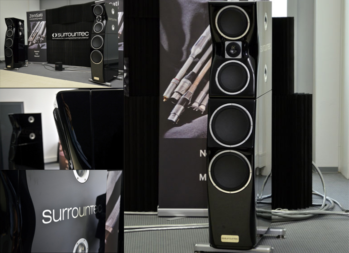Whilst on clever names, Surrountec is likely to conjure up anything but a mostly pro-oriented speaker firm from the Schwabian Untergruppenbach. To break into the home hifi scene the company had rolled out their Meisterstücke (masterworks). Suzanne Vega’s acapella number "Tom’s Dinner" sounded extraordinary – highly organic, harmonically exceptionally rich and pure. Equally out of the ordinary were fit ‘n’ finish of this 150kg 160cm tall flagship. Piano lacquer whose application and curing consumes a solid three months; routed-from-solids aluminum parts including the driver baskets; Titanium screws; Accuton ceramic drivers including a diamond tweeter; gold hookup wiring; and hand-rolled silver coils and capacitors are just a few of the details that accompanied these bi-amped monsters. Extraordinary too was the sticker of €250.000, thankfully for the pair. Cough. But these Schwabians also work smaller. Their Professional range starts at €9.000. We’re quite keen on investigating this company further.