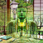 The right image from her Power of Faith exhibit at the Ballina Arts Center of County Mayo on May 3rd 2019 exemplifies why I want to here share these mages with the world. As hinted at in the tribute on the next page, Ivette made art to transmit spirit. This is in the tradition of her teacher Adi Da Samraj [left] who made art from a realizer's perspective in his Naitauba island hermitage on Fiji; and Chögyam Trungpa [below right] whose Nalanda Miksang way of contemplative photography she learnt then taught.