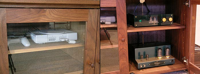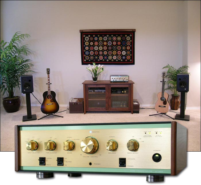 ASA's suggested 'musical' match for the Monitor Baby, the Leben CS600 integrated amplifier, really did deliver the perfect match. It was this combination that most flattered the Monitor Baby's overall balance to give the most musically natural presentation. One of the nice things about the Leben CS600 is its flexiblity. It can utilize a number of different output valves to voice the amplifier to your tastes. It also puts out about 30 watts (max, depending on the valve choice), which easily drove the Babys to very loud levels. I went with an old favorite of mine, the EL34, for its silky smooth and warmly nuanced brush across the music. |