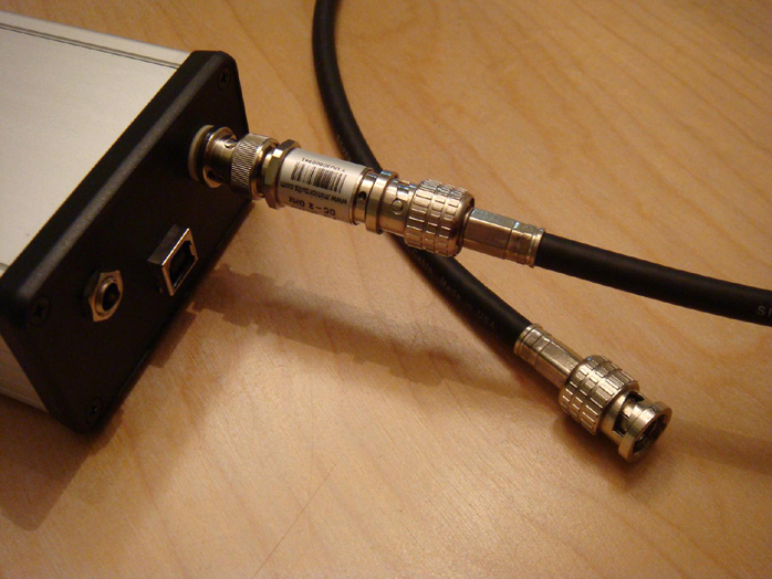 Along with each JKSPDIF Kenny ships a 15dB attenuator and BNC/RCA adaptor. There has been a good degree of online chatter about the alleged benefits of using an inline attenuator on S/PDIF cables. From what I gather it has to do with reducing signal reflections which causes time-based distortion, the bane of digital signal transmission. I won’t get into how all this purports to work as I don’t quite understand it. Point your browser here to learn more. Whatever the reason, I noticed an immediate effect when I inserted the attenuator onto Silver Sonic’s D-75. Music became slightly smoother and more relaxed. Instruments displayed more natural realistic timbre. The addition of the attenuator brought performance up to a level almost identical to that of my 16 times more expensive MIT Magnum cable.