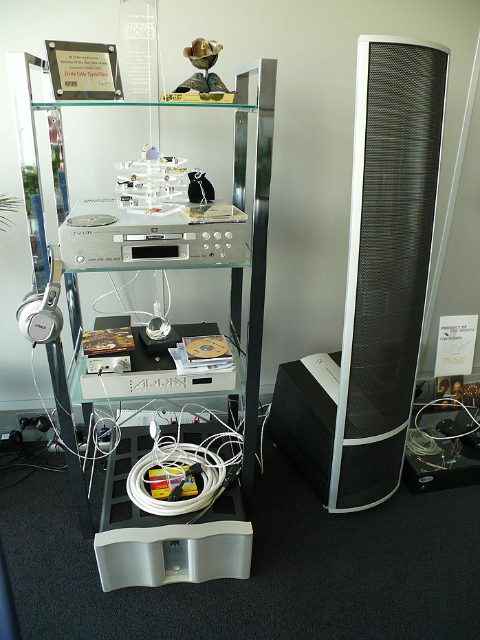 Rather more radical than a new, even more expensive cable than the Ultra will be the new Crystal Cable loudspeaker. Think his and hers. Now that hubby Edwin has launched his Pantheon line [Pantheon 25 flagship below], Gabi will get her own to market and sell. |