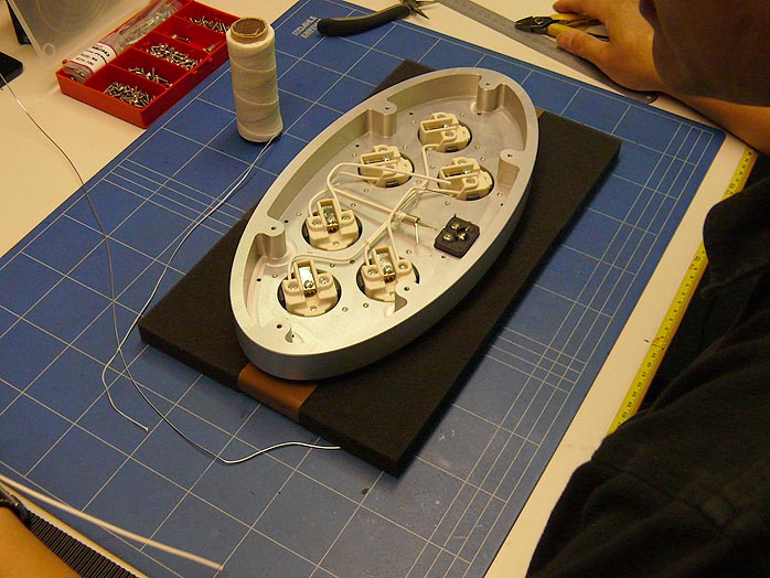 The newest item in the Crystal Cable catalogue is the power strip being assembled below. |